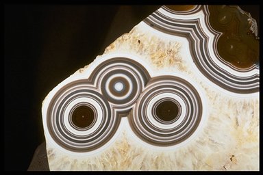 Agate from Uruguay. This specimen is on the cover of the book " l'ecriture des pierres " written by Roger Caillois, poet and the Honrary President of the Friends of Mineralogy association